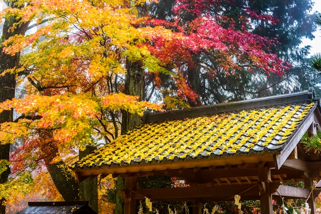 その過程で葉の色が赤や黄色に変化し、紅葉が起こる。